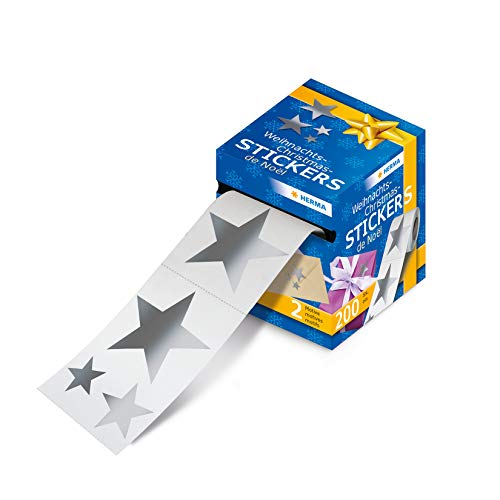 Herma 200 julklistermärken rulle för kortframställning, hantverk, kuvert och juldekorationer, självhäftande etiketter för barn och barn Silverstjärnor