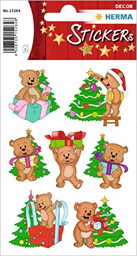 HERMA 15264 julklistermärken, julbjörnar (21 klistermärken, papper, matt) självhäftande juldekoration, permanent självhäftande etiketter till jul, presenter, hantverk, adventskalender, färgglada