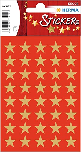 HERMA 3412 julklistermärken, guldstjärnor 5-uddig (Ø 13 mm, 120 klistermärken, papper) självhäftande juldekoration, permanent självhäftande etiketter för jul, presenter, hantverk, adventskalender