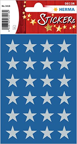 HERMA 3418 julklistermärken, silverstjärnor 5-uddig (Ø 15 mm, 72 klistermärken, papper) självhäftande juldekoration, permanent självhäftande etiketter för jul, presenter, hantverk, adventskalender