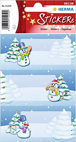 HERMA 3216 julklistermärken, snögubbar (27 klistermärken, papper, matt) självhäftande juldekoration, permanent självhäftande etiketter till jul, presenter, hantverk, adventskalender, färgglada