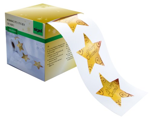 Sigel CS112 julklistermärken på en rulle "Christmas Stars", 200 klistermärken, guld