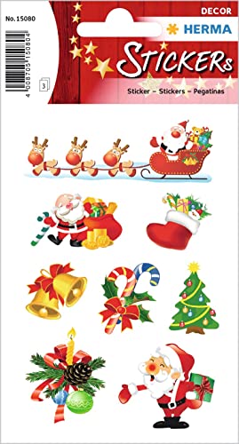 HERMA 3219 julklistermärken, jultomten (63 klistermärken, papper, matt) självhäftande juldekoration, permanent självhäftande etiketter för jul, presenter, hantverk, adventskalender, färgglada