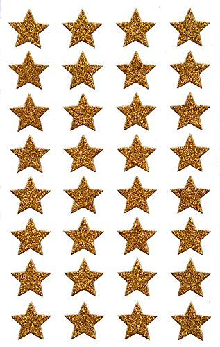 AVERY Zweckform Art. 52274 julklistermärken 32 gyllene stjärnor (julklistermärke av glitterfolie, självhäftande juldekoration för kort, gåvor, gör-det-själv) 1 ark med 32 stjärnklistermärken