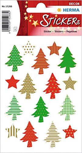 HERMA 3893 julklistermärken, granstickor (16 klistermärken, papper, glittrande) självhäftande juldekoration, permanent självhäftande etiketter till jul, presenter, hantverk, adventskalender, färgglada