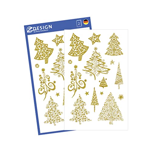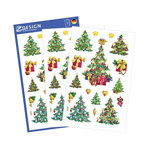 AVERY Zweckform 24 klistermärken jul julgranmotiv (tillverkade i Tyskland, julklistermärken papper, självhäftande juldekoration kort, gåvor, påsar) 3 ark / 10 klistermärken, 52401
