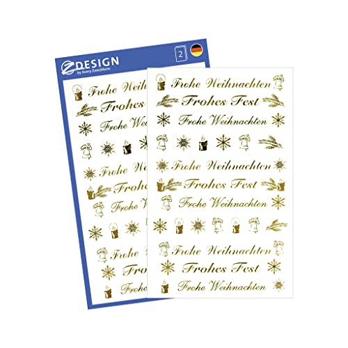 AVERY Zweckform 44 klistermärken julbokstäver guld (julklistermärken transparent folie, självhäftande juldekorationskort, påsar) 2 ark/22 klistermärken, gyllene julbokstäver, 52391