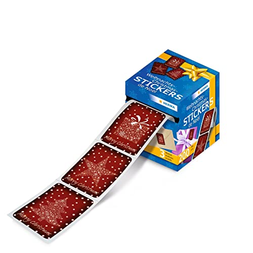 Herma 200 julklistermärken rulle för kortframställning, hantverk, kuvert och juldekorationer, självhäftande etiketter för barn och barn Merry Christmas Red