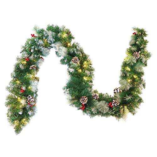 UISEBRT Julkrans, dörr, LED-belysning, 300 cm, för inomhus- och utomhusbruk, dekoration – julgirlang, grangirlang med tallnål, röda bär och grankottar (typ A, 300 cm med LED)