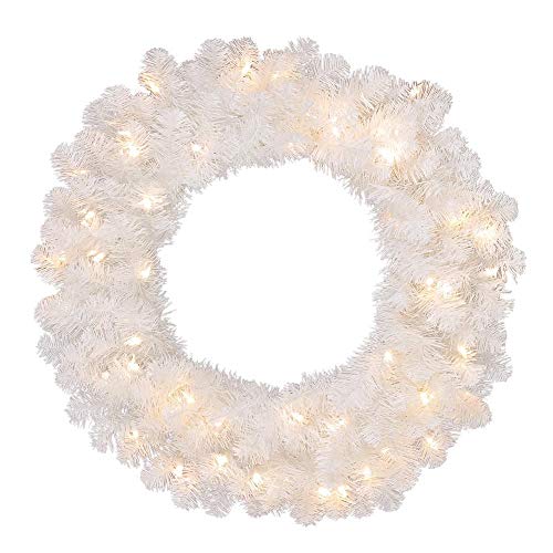 55 cm förupplyst vit julkrans Alaskan tall för eldstäder hem vägg dörr trappa konstgjord julgran trädgård gård dekorationer med 30 varma vita lysdioder
