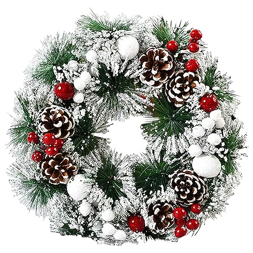 SHACOS Julkrans dörr 46 cm julkrans med röda bär julbollar och tallkottar vinterdekoration hängande för ytterdörr, vägg, fönster