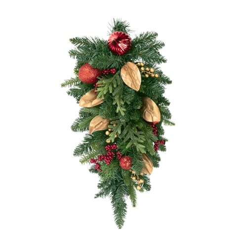 SHACOS Julkrans dörr 73 cm julkrans med röda bär och julbollar hängande dekoration julprydnad för dörr vägg öppen spis