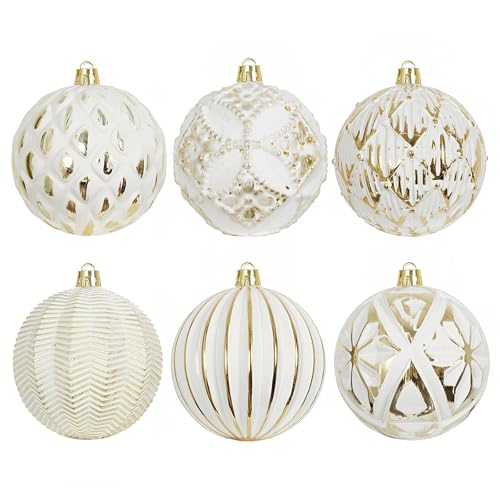 XmasExp Vintage rustika julkulor prydnadsset, 8 cm plast bondgård nödställda träddekorationer okrossbara antik traditionell stil hängande prydnader (vitt guld, 6 st