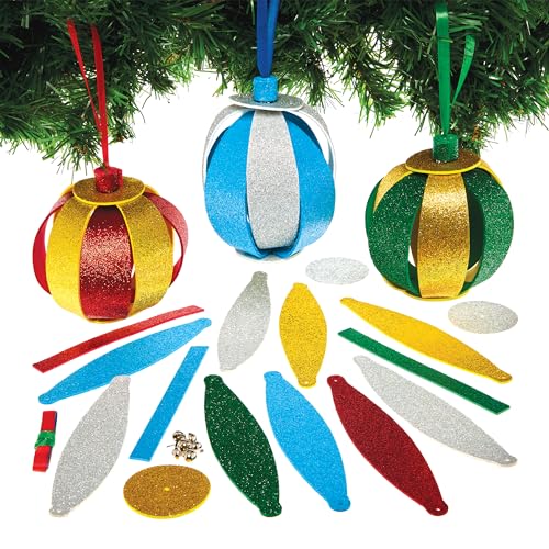 Baker Ross FX700 Dekorationssatser med julkulor och glitter - 6-pack, pyssel för barn med juldekorationer