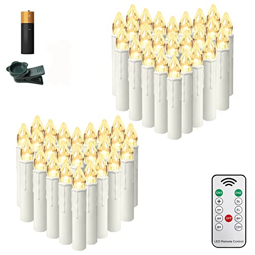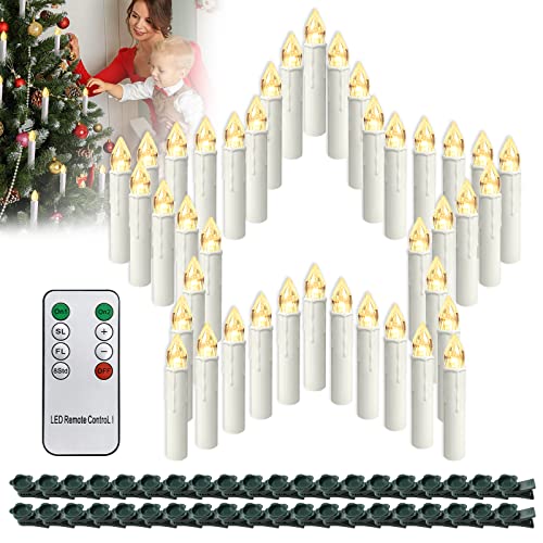 20–60 stycken jul-LED-ljus, julbelysning, ljuskedja, ljus, trådlösa julljus, julgran, ljus med fjärrkontroll, trådlösa, julgransljus (mjölkvitt stearinljus, 40 st)