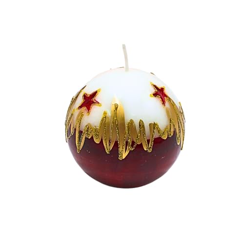Ädel bollljus, bordsljus, dekorationsljus, vaxljus med julmotiv, julljus som kula, 8 cm jul, i vitt, rött och guld.