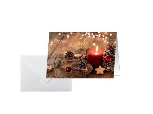 Sigel DS093 Premium set med julkort, rött julljus, A6, 10 kort med kuvert, perfekt för tryck, tillverkade av hållbart papper