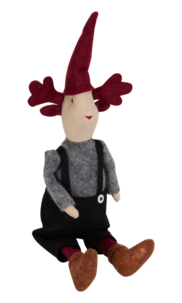 Julnisse 45 cm sittande rensdyrpojke i mjuk filt