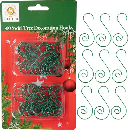 40 st gröna julprydnader hängare krokar för julgranskulor, ljusslingor – återanvändbara virvel S-krokar för enkla julkonst hantverk dekorationer