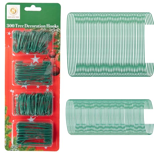 300 st gröna julprydnader hängare krokar tråd – blandade storlekar för julgranskulor – återanvändbara krokar för enkla juldekorationer