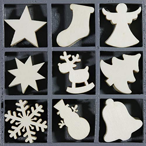 cArt-Us 10,5 x 10,5 cm trälåda som innehåller 45 julprydnader