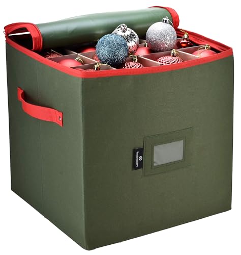 Förvaring av julprydnader – förvarar upp till 64 semesterdekorationer, justerbara avdelare, dragkedja med två handtag. Attraktiv förvaringslåda håller semesterdekorationer rena och torra inför nästa säsong.
