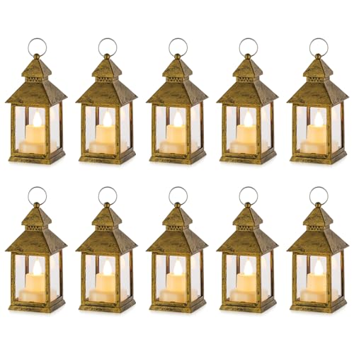 NUPTIO Ljuslyktor Halloween-dekorationer - 10 St Guld Flimrande Led-värmeljus Minilyktor Hängande Med Marockanska Julprydnader Bord Vardagsrum Inomhus Utomhus Ramadan