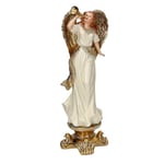 ÄNGEL I RESIN PÅ CREMEFÄRGAD OCH GULDEN SOCKEL 12,5X11H36CM JULPRYDNADER DEKORATIONER