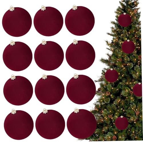 Sammet julprydnader 12 st flockande julgranskulor okrossbara julprydnader hängande julprydnader för bröllop, julgranar (vinröd), julbollar prydnader 2,4