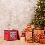 Household Essentials 551RED Stor förvaringslåda för julgransprydnad – förvarar upp till 36 julprydnader – röd papperskorg med grön kant