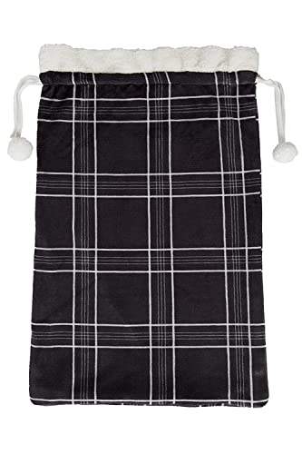 Sleepdown Tryckt rutig fleece med sherpa julsäck med pompom – 68 x 50 cm – kol