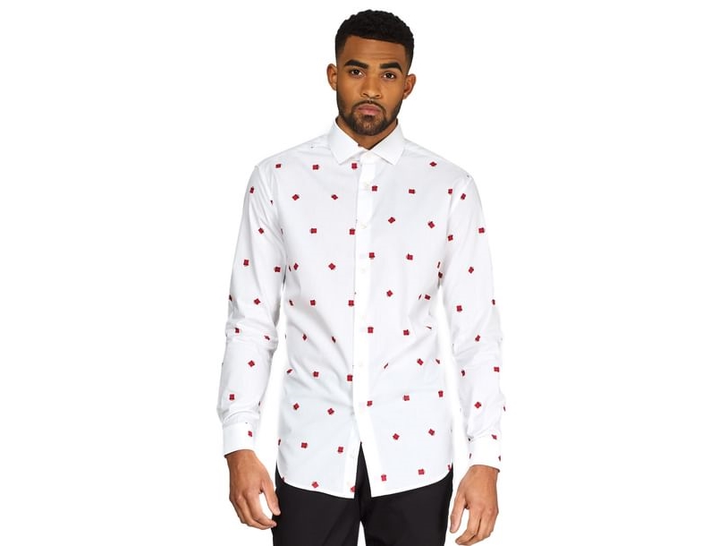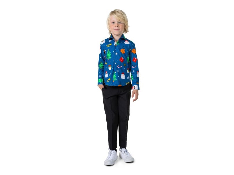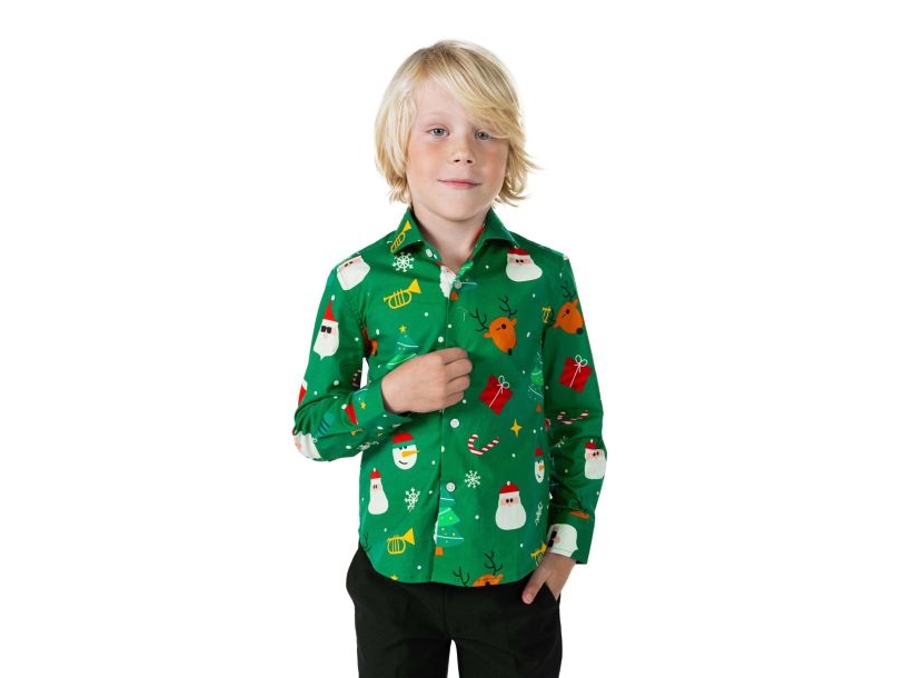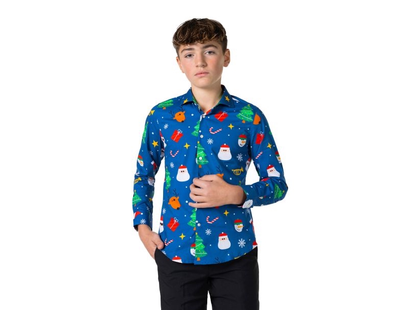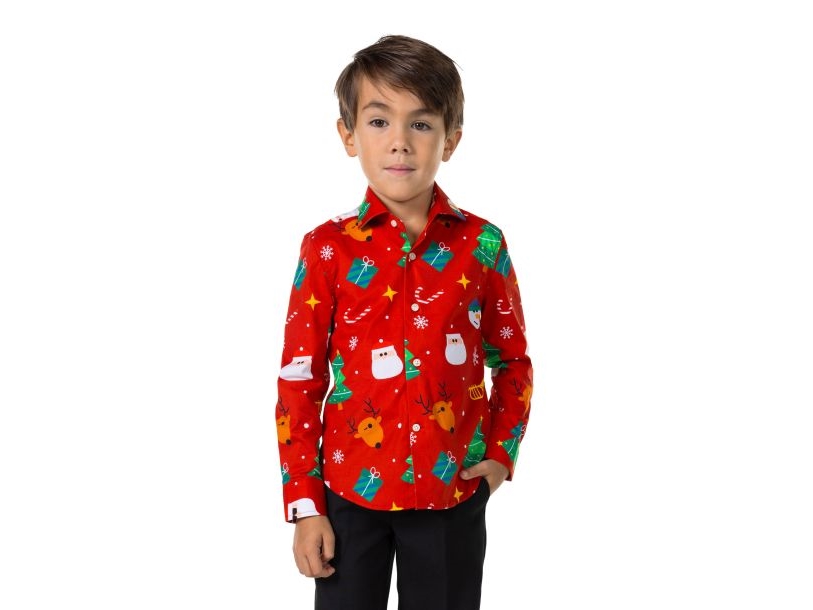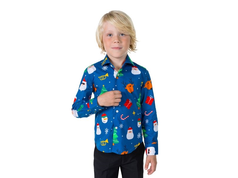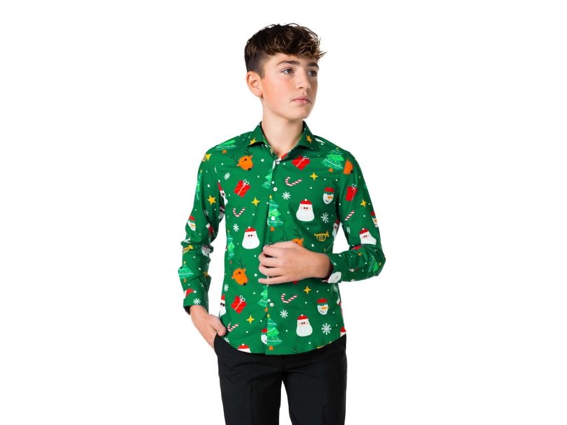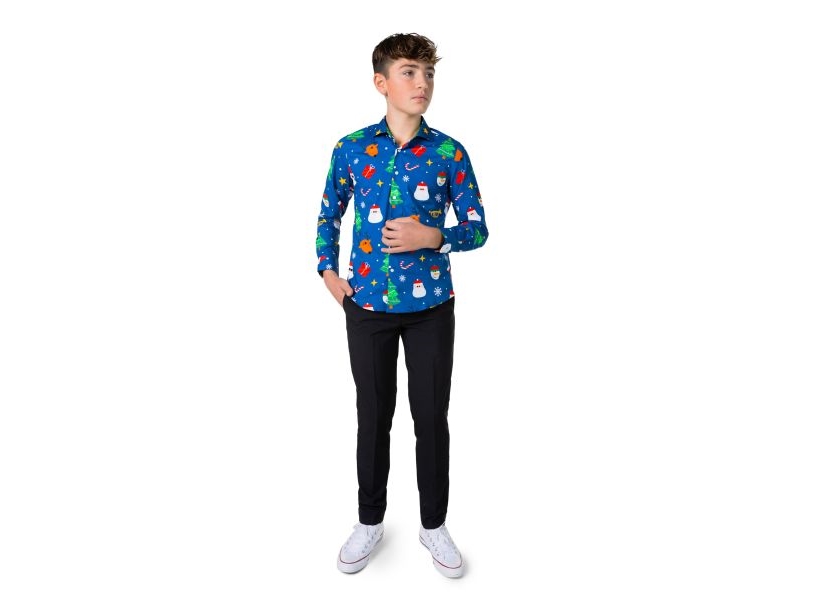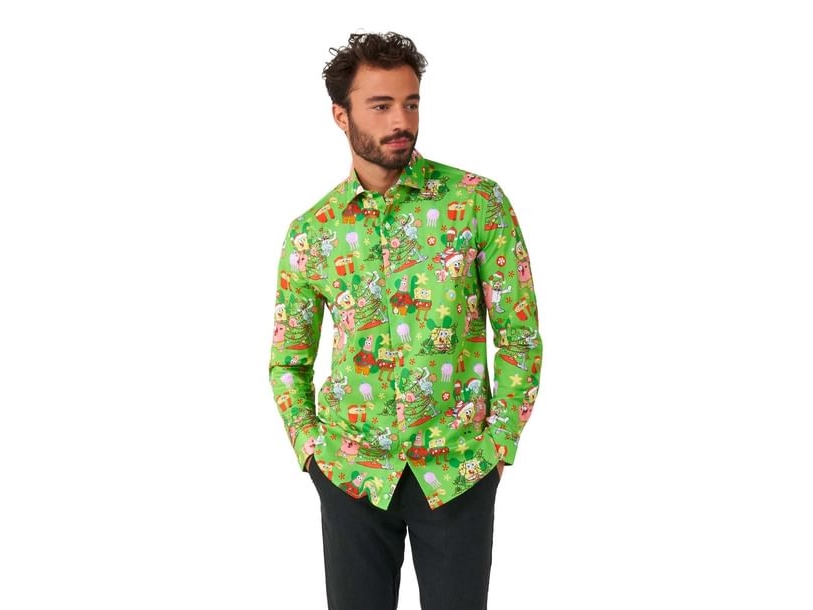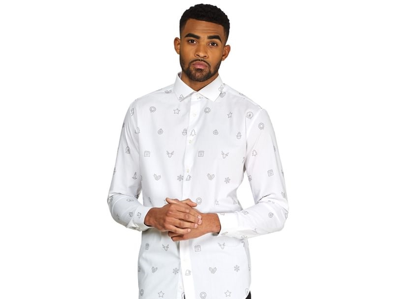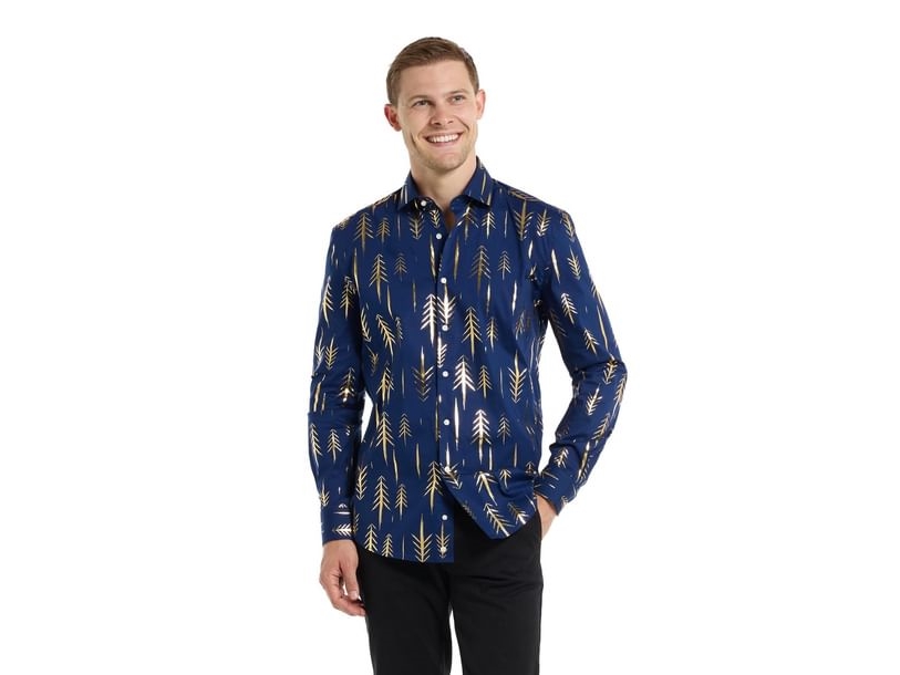 Goodstoworld Julskjorta för män, julmönster, 3D-tryckt, långärmad, slim fit, ståkrage, strykfri, fritidsskjorta, storlek M–XXL, XL