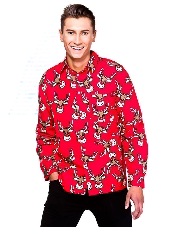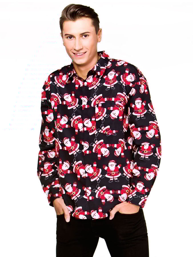 TAGVO Jul-skjortor för män, 3D-tryckta jultröjor med mönster, avslappnad långärmad julskjorta, toppar, storlekar M–5XL, XL