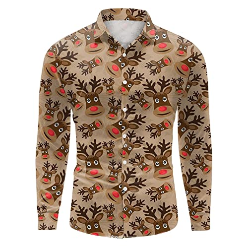 CGGMVCG Julskjorta för män, med knappar, avslappnad, rolig, tryckt, med kavajslag, långärmade julkläder, b, L