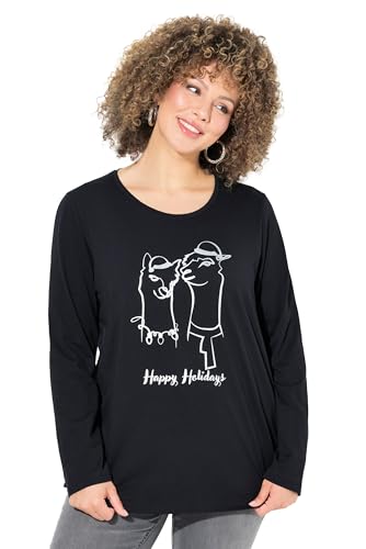 Ulla popken dam stora storlekar plus storlek julskjorta, klassisk, rund hals, långärmad, svart, 46-48