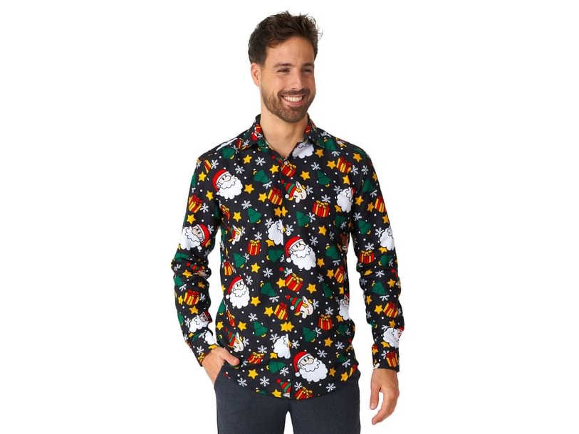 COOFANDY Julskjorta för män, tryck, skjorta, roliga funkiga, långärmad skjorta, julmönster, Julsvart, S
