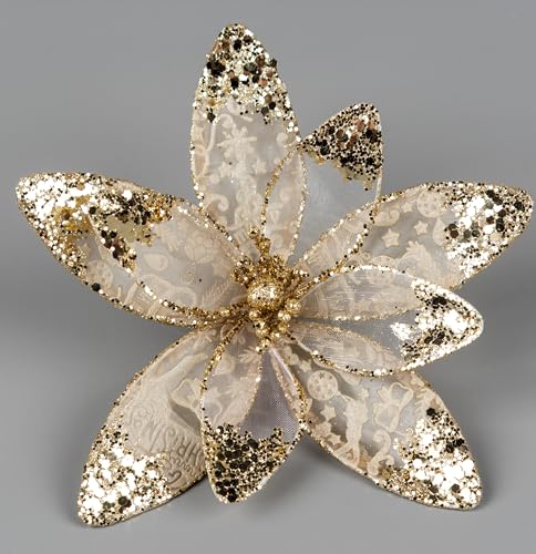 SHATCHI 6 st – 20 cm deluxe julglitter julstjärna elfenben guld konstgjorda blommor med metallklämmor julgransdekorationer bröllop nyår prydnader