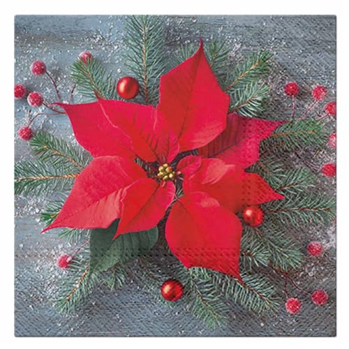 20 st Röda Julstjärna Servetter 14,5x15,5 cm