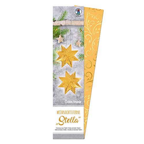URSUS 1616000 Julstjärna Stella Tendrils, gul, 110 g, ca 7 x 30 cm, 33 blad, gyllene förädling, inklusive veck