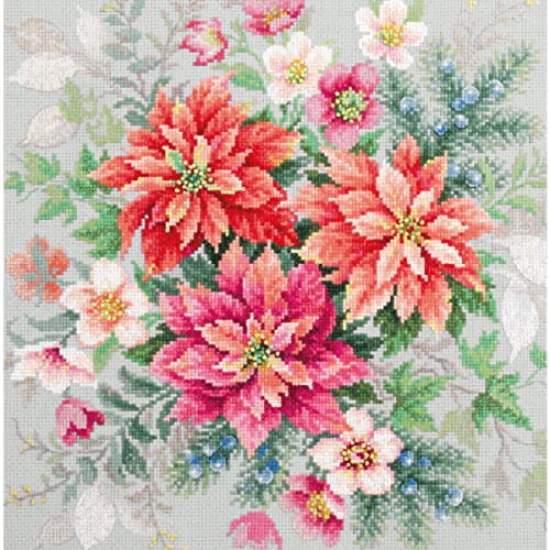 Magic Needle 214-273 ZW Blommagi julstjärna korsstygnsset med räkningsmönster kvistutgåva, bomull, flerfärgad, 30 x 30 cm