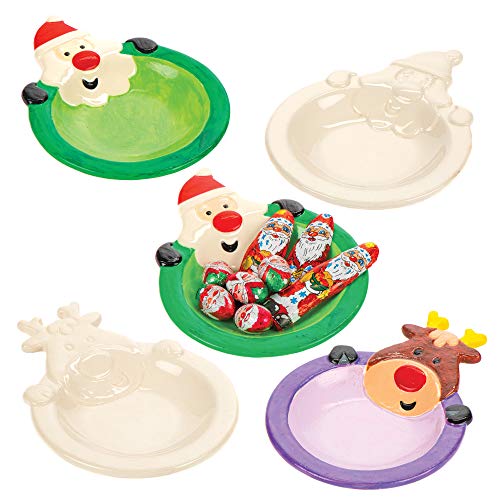 Baker Ross porslinstallrik "jultomte och ren" (2-pack) perfekta kreativa julartiklar, barn att designa och dekorera, perfekt för pyssel hemma