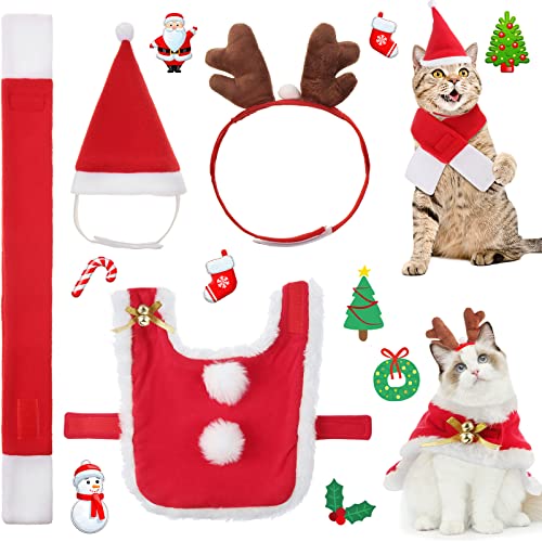 4 delar husdjur juldräkt outfit justerbar kattkläder kostym katt jultomte julhatt och halsduk hund ren horn hatt för jul fest cosplay