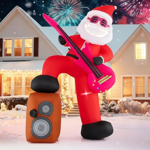 Fantas uppblåsbar jultomte med gitarr och musik, juldekoration stor för inomhus och utomhus, självuppblåsande, 180 cm, med LED-belysningsaccenter