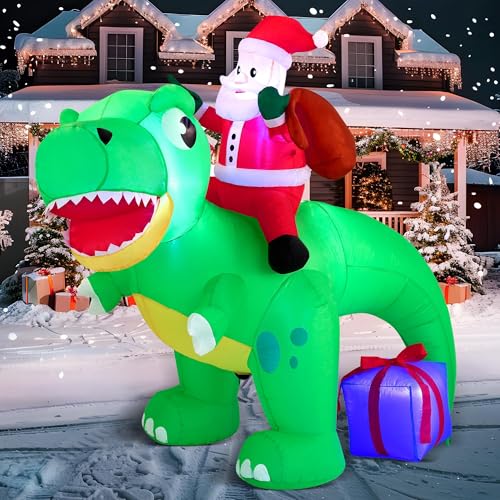 Joiedomi uppblåsbar jultomte med dinosauriemotiv, 180 cm lång, med integrerade lysdioder, uppblåsbar för jul, fest, inomhus, utomhus, gård, trädgård, gräsmatta, vinterdekoration