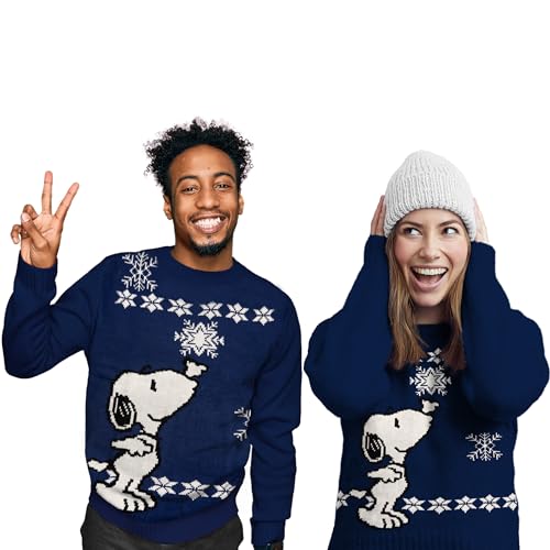 The Peanuts unisex jultröja – Snoopy Winter Strick Tröja Tröja Ugly Christmas tröja för herr och dam blå, Blå, S