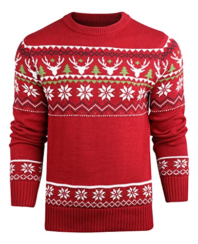 Danfiki Jultröja, herr, rund hals, varmstickad tröja för jul, röd, M