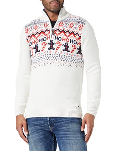 TOM TAILOR Herr jultröja med ståkrage 1032308, 30804 - White Navy Placed Jacquard, XXS