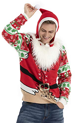 OFF THE RACK Unisex herr dam rolig jultröja ful jultröja huvtröja stickad tröja för jul, Fat Fluffy Santa Feels, XXL