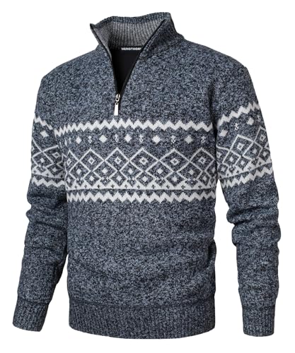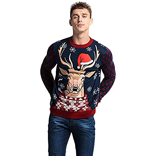 Herothorn Herr rund hals pullover jultröja ledig långärmad smal passform stickad jumper topp för daglig semester fest, marinblå, XXL