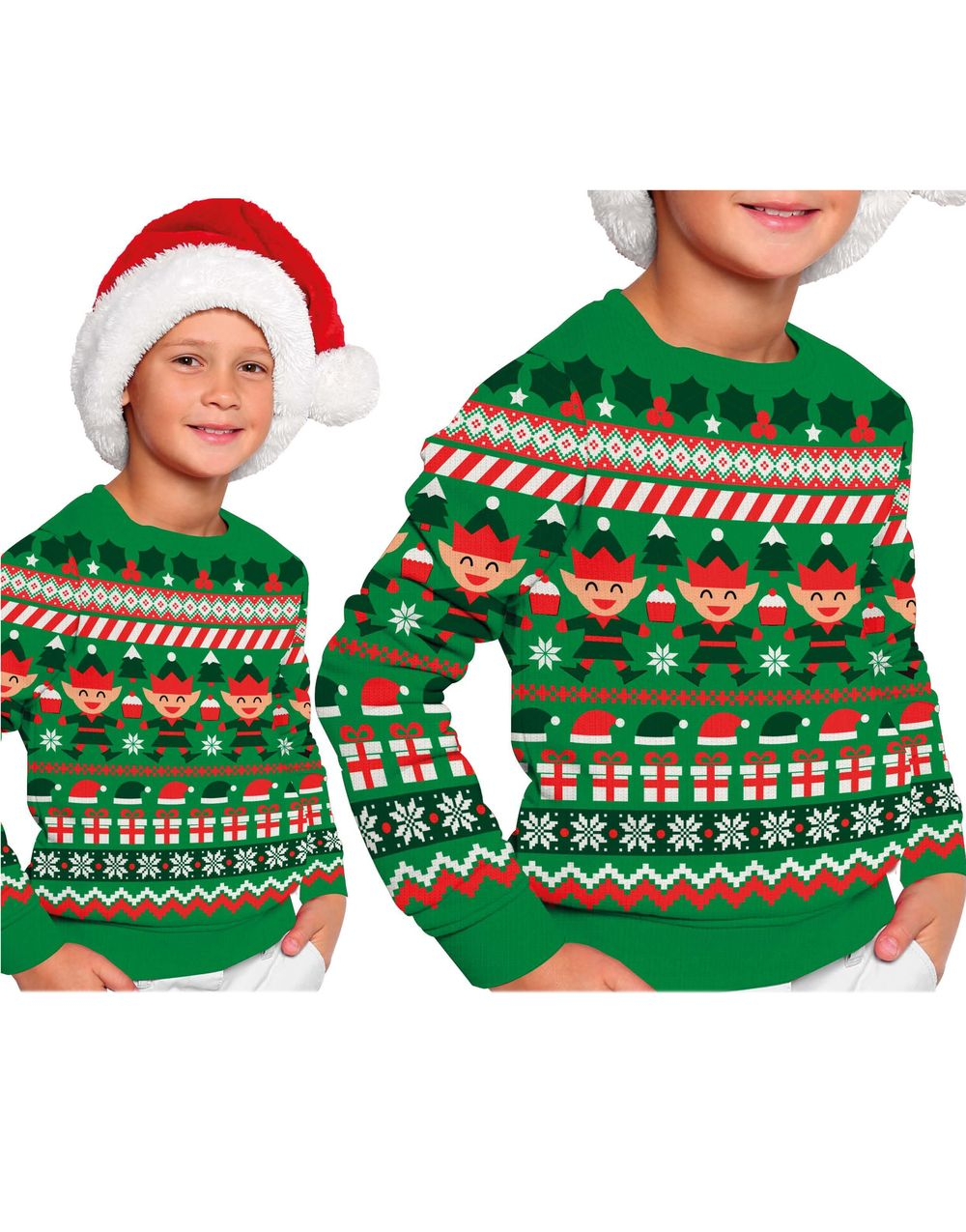Grön Jultröja med Tomtenissar och Andra Julmotiv till Barn